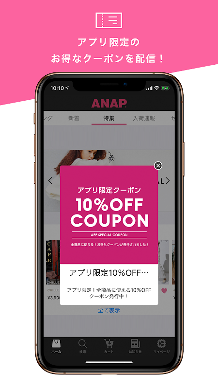 アプリ限定クーポン等のおトクな情報はもちろん、気になったアイテムはアプリでそのまま購入可能!また、トレンドの最旬コーデもアプリからチェックできます!ANAPの最新情報をアプリでいち早くチェックしよう!!