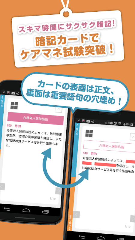 ケアマネジャー試験で最難関とされる「保健医療サービス」分野に特化した新アプリ。「正解文例を覚える」→「穴埋めモードで確認」を繰り返すことで、実力アップ!