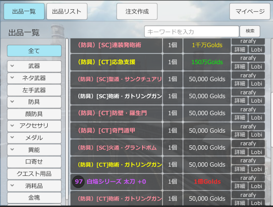 2.アプリ内で出品されたアイテムを一覧表示出来る。