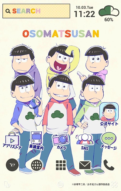 人気TVアニメ「おそ松さん」の公式無料きせかえテーマです。壁紙やアイコンなどホーム画面をかわいい「おそ松さん」スタイルに着せ替えよう!