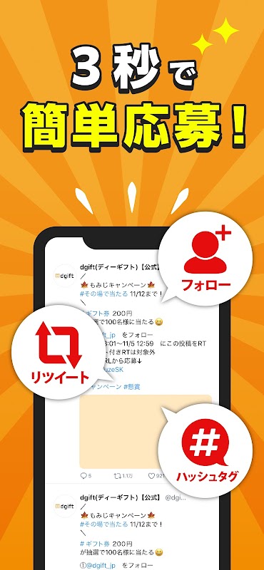 ② @dgift_appをフォロー&対象ツイートをリツイート