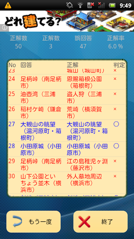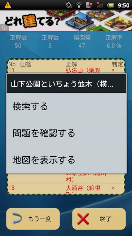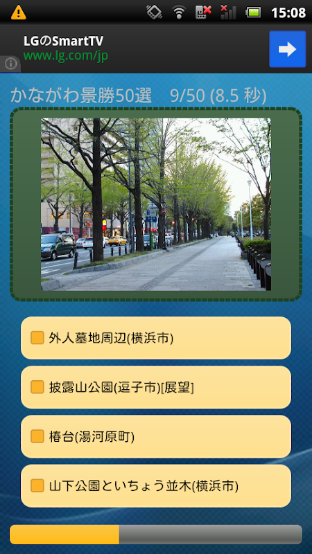 神奈川県内の風景の画像を見て、4択から回答を選択します。