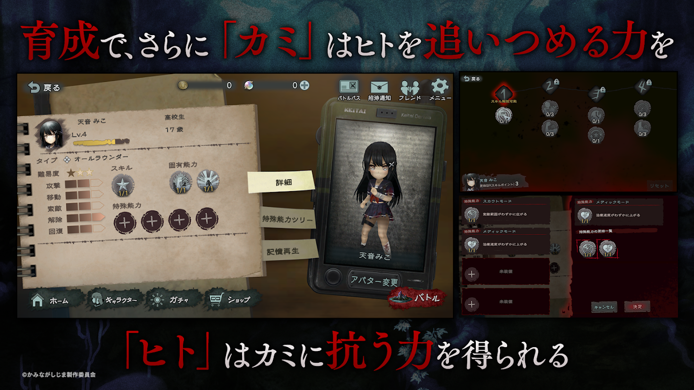 <カミ>の能力を使って脱出を図る<ヒト>を捜しだして攻撃し、呪われた孤島からの脱出を阻止しよう。
