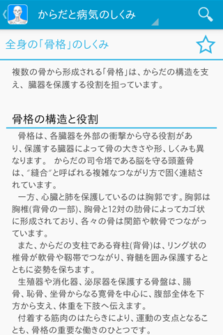 250点を超える詳細カラーイラストで、からだの各部位の働きと病気のしくみを分かりやすく図解化したアプリ