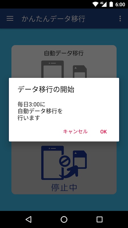 ・データ移行は他のアプリが実行されていない時刻を設定するようにしてください。