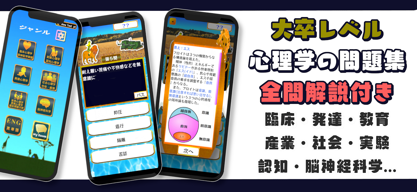 ◆「心理学の勉強をしたけど忘れてしまった」、「院試や資格試験の過去問をみても基本用語からわからない」、「大学の心理学ってどんなことを勉強するの?」、「心理学は自分の専門分野ならわかるけど他分野は全然わからない」、そんな初学者から研究者まで、心理学の学習者を支援するためのクイズアプリです。