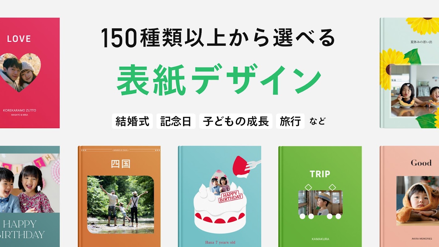 フォトブック表紙のデザインは随時更新されるので、用途や季節に合わせて選ぶことが可能です。