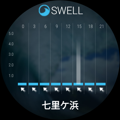 設定した1ヶ所で、24時間の波高(うねり)・風情報のデータ情報を確認できます。