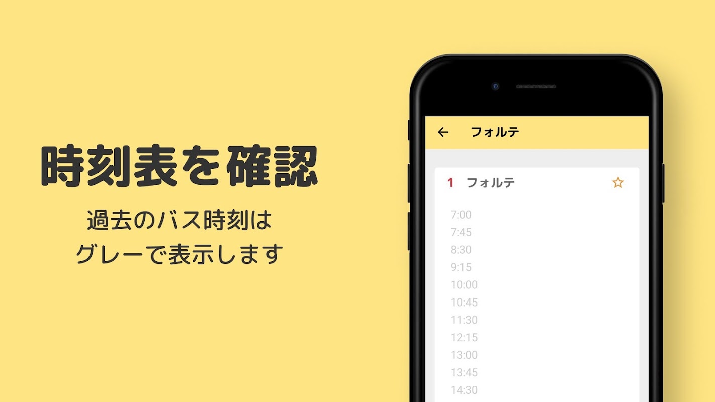 よく確認するバス停をお気に入りに登録することができます。時刻表の右上の星マークをタップすると、お気に入りに追加されます。