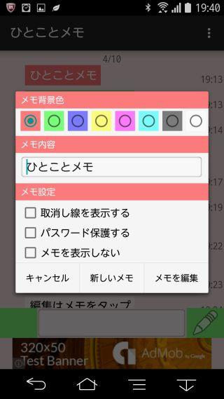2.色選択ボタンを長く押すと、メモ登録画面を表示します。