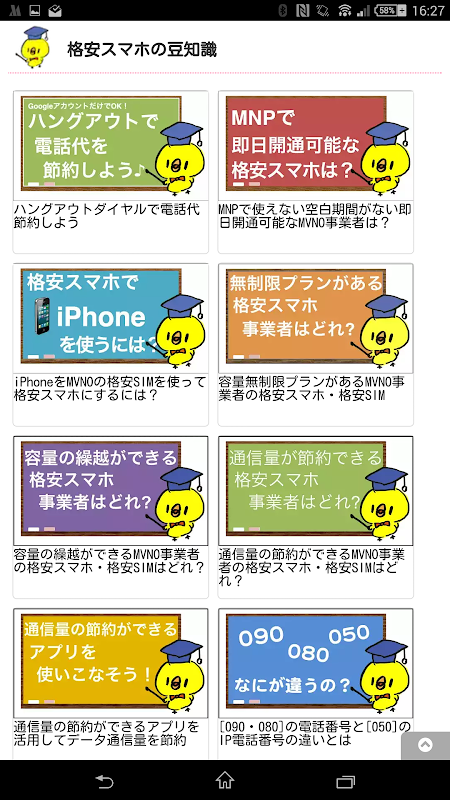 格安スマホ・格安SIMについての疑問や基礎知識などをひよこ先生と一緒に学べるアプリです。