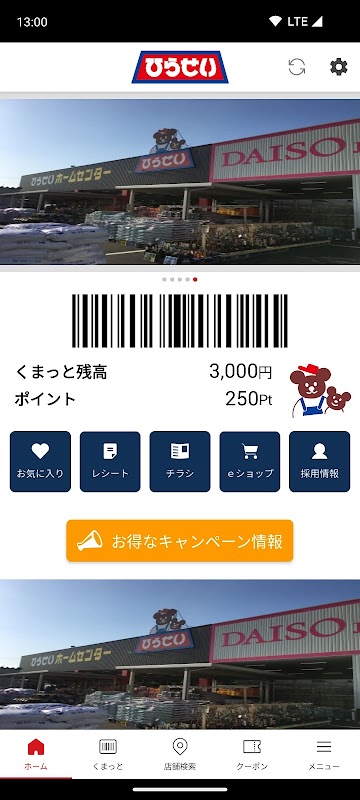 「ひらせいプレミアムカードアプリ」は、ひらせいホームセンターグループの各店舗でのお買い上げ金額に応じたポイントサービスが受けられます。