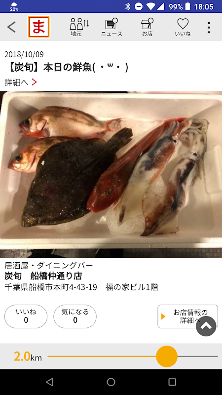 ・インストール時に登録する地元の情報だけでなく、現在地の位置情報に基づくお店の情報も1タップで取得できます。