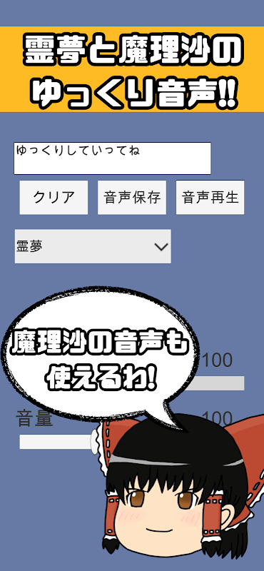 ゆっくりボイス(霊夢・魔理沙)を生成・保存できるアプリ!