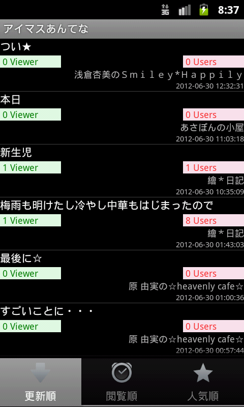 「新着順」と「閲覧順」と「人気順」でブログを閲覧することができます。