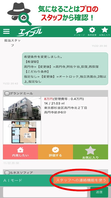 チャット型お部屋探しのエイブルAGENTアプリ版が、AIモード機能追加でさらに便利に!スタッフへ相談できる【AI応答+スタッフモード】への切り替えも可能です!