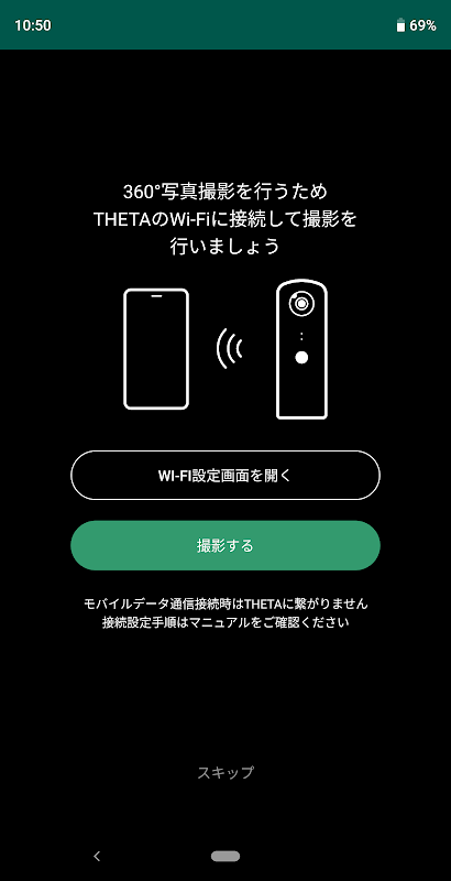 カートルでの撮影に必要なものは、スマートフォン・360°カメラ(RECOH THETA)・三脚の3つのみです。