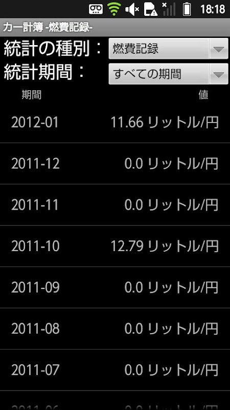 - 1か月ごとの燃費、ランニングコスト、給油量小計を計算、および表示できます。