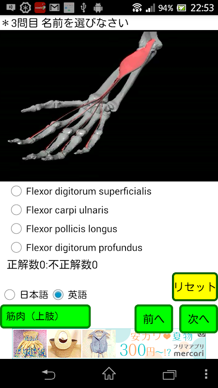 ・筋肉(上肢)・・・・・41問中ランダムに10問出題