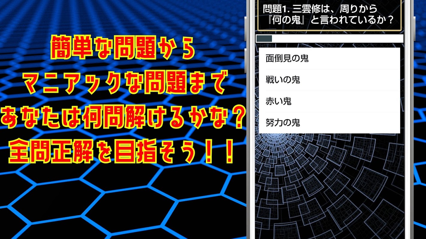 大人気のワールドトリガーのクイズアプリ登場。 問題多数有。あなたは何問解けるかな?全問解けるように頑張ろう。