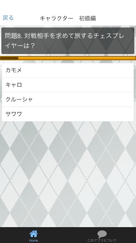 問題はキャラクター初級編、キャラクター上級編、武器、モンスター、総合問題で構成されています。