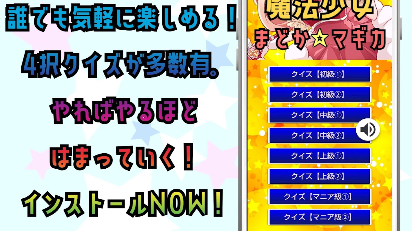 大人気アニメ「魔法少女まどかマギカ」のクイズアプリ登場。 漫画・アニメ・等から幅広く問題を出しております。