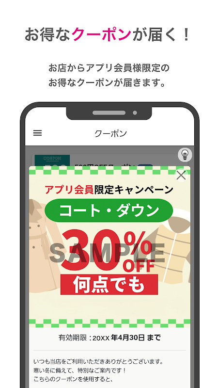 最新情報やお得な情報をスマホアプリへ配信いたします。