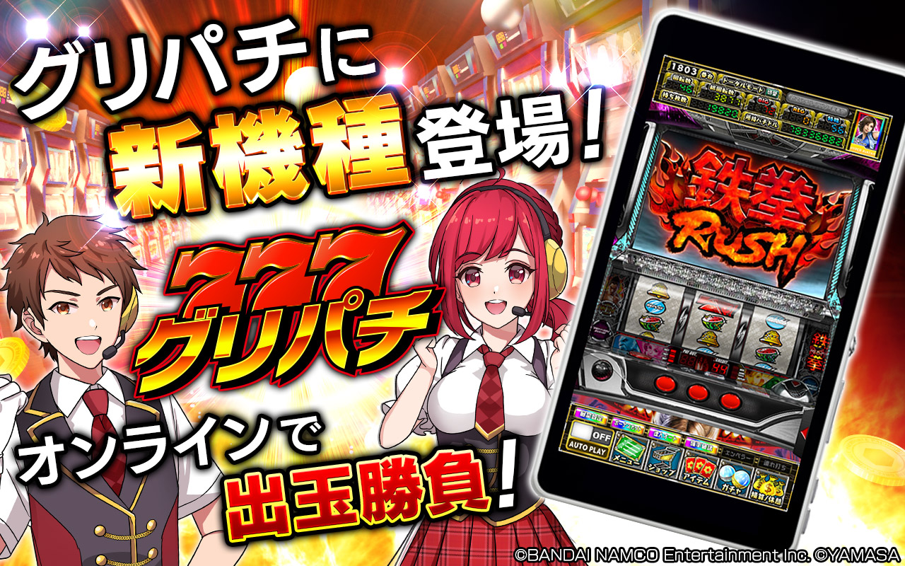 人気実機パチスロアプリ『パチスロ鉄拳2nd』が【グリパチ】に登場!基本プレイ無料のパチスロシミュレーションアプリです。