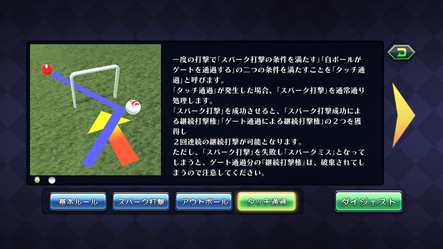 フィールドにダミーボールが配置され、ダミーボールにぶつかると継続打撃権を得られます。