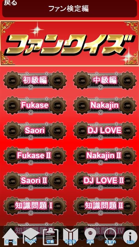 ファン度を試す、知識クイズや