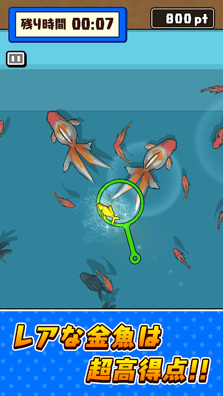 2、タイミングを見計らって、指を離すと金魚がすくおう!