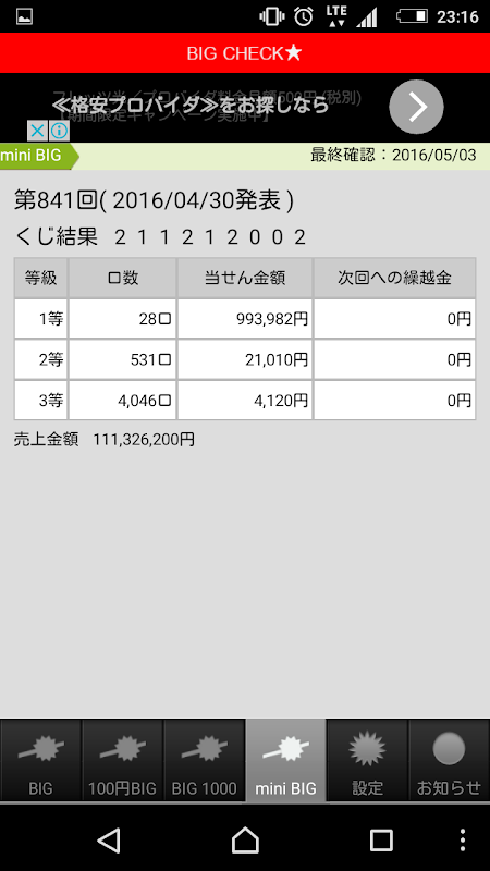 サッカーくじのBIG、100円BIG、BIG1000、mini BIGの結果を簡単に確認できる無料アプリ。試合結果と口数や当せん金額を速報としてお知らせします。