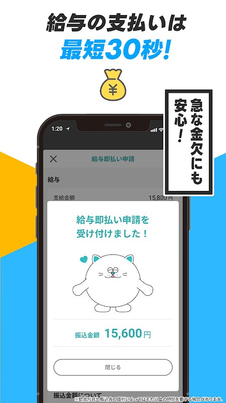 5.当日になったら直接勤務先へ!勤務後、最短30秒でお給料振込(※2)