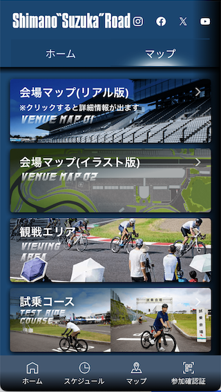■会場マップ、レースコース、試乗コースが一目でわかるマップ機能