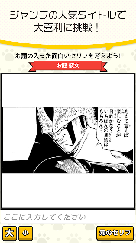 ジャンプの漫画のコマに好きなセリフを入れて大喜利しよう!見ているだけでも楽しい大喜利ゲーム!