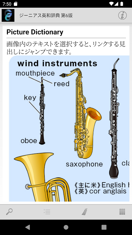 ・身近なものを中心にイラストで紹介。 事物の名称を目で見て楽しく学べる「Picture Dictionary」を収録。イラストにある名称/用語をタップすることで、対象の用語解説にジャンプして読むことができます。イラストから体系的に学ぶことができます。