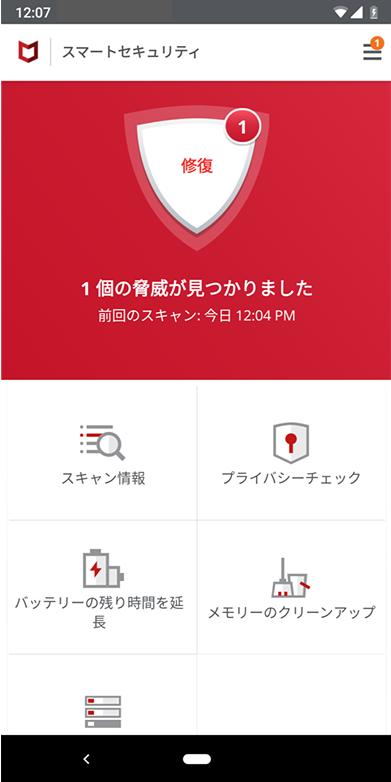 スマートフォンで、インストールするアプリや外部メディアを通して侵入するウィルスから、携帯電話を守るためのアプリです。