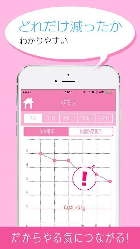 体重を記録するだけ! シンプルで簡単だから続けられるダイエットサポートアプリです。 カレンダー、グラフ機能で痩せる過程を見える化、持続するダイエット、体重管理!