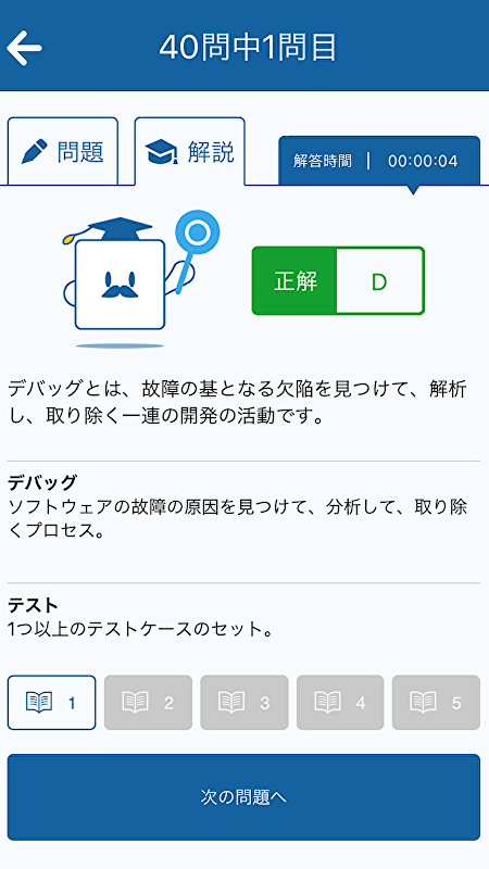 すべての問題には、問題の解説と参考となるシラバス、用語集が紐付けしてあります。