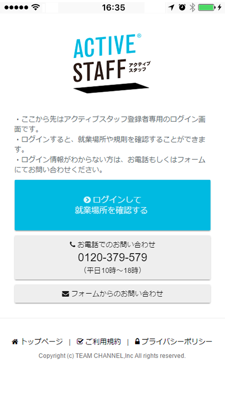 アクティブスタッフで勤務する方への情報連携アプリです。