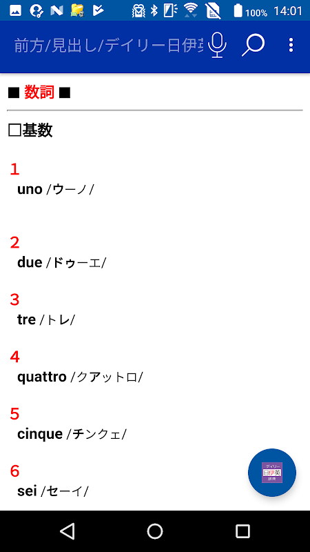 日伊訳語(イタリア語)・・・日本語を入力して「日伊英」辞典を対象に検索します。