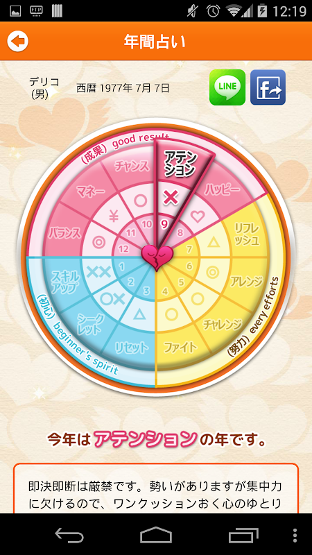 生年月日から導き出す12の星と、運命の輪に示す12のサイクルをもとに診断します。自分自身を見つめ直し、運気のサイクルを知って、ベストなリズムをつかむことで、心構えができるようになる究極の元気が出る占術!