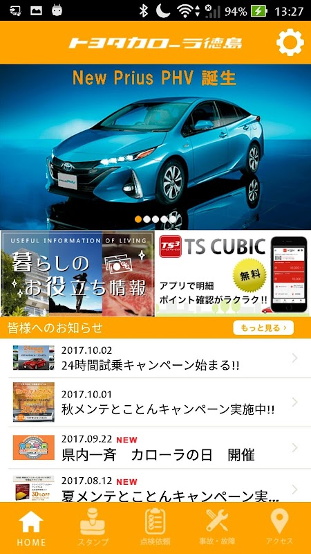 アプリを通して「トヨタカローラ徳島」の新着情報やお役立ち情報をリアルタイムで受け取ることができます。
