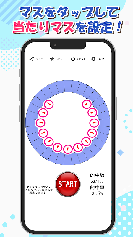 3.赤いマークのある当たりマスに来たときにストップボタンを押します。