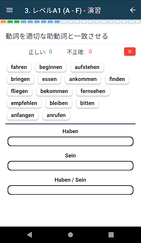 アプリケーションドイツ語の不規則動詞は、50以上のレッスン、辞書における1200語以上の単語、そして動詞を使用した600の例文を含んでいます。これには200以上のグラフィック、約1400のサウンド、そして「単語のマッチング」、「文の整理」を含む320の練習問題が含まれています。ドイツ語学習に最適です。今日からあなたの言語学習の旅を始めましょう!