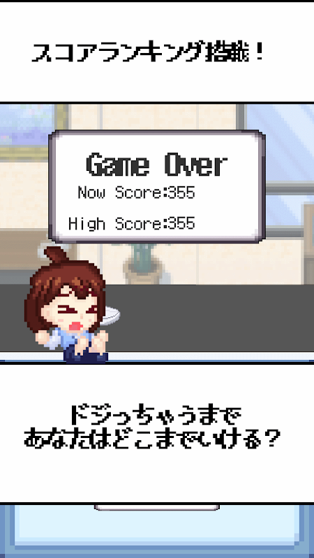 慌てて走り回るドジ子を操作して、ハイスコアを目指してください!
