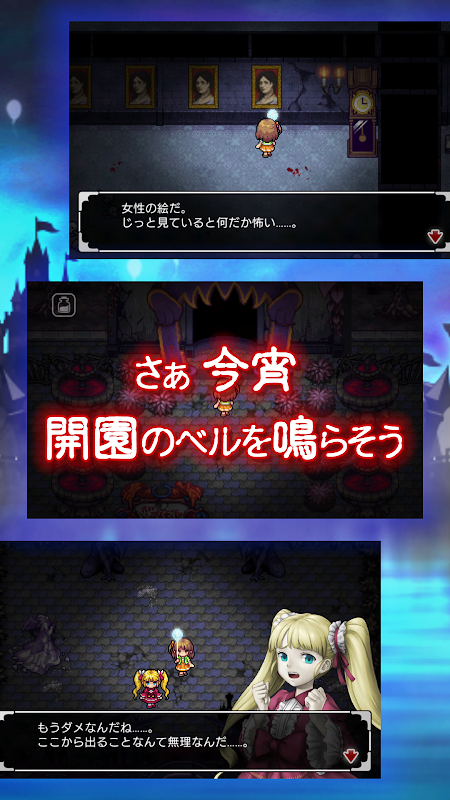 遊園地の中を歩き回り、手掛かりを見つけて脱出する探索ホラーゲームです。不気味さを醸しだすドット絵と随所に散りばめられた罠がプレイヤーの恐怖を引きたてます。