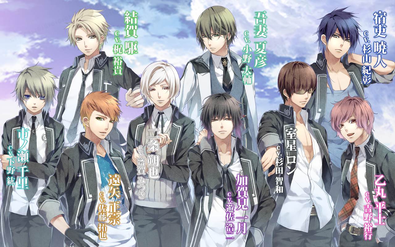 結賀 駆 (CV:梶裕貴)、市ノ瀬 千里(CV:下野紘)、遠矢 正宗(CV:佐藤拓也)、吾妻 夏彦(CV:小野大輔)、二条 朔也(CV:斎賀みつき)、加賀見 一月(CV:遊佐浩二)、宿吏 暁人(CV:杉山紀彰)、室星 ロン(CV:杉田智和)、乙丸 平士(CV:吉野裕行)