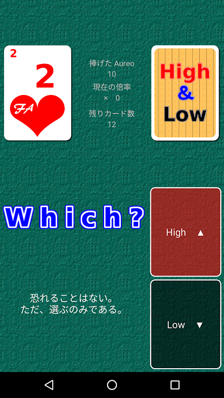 ハイ&ローはトランプを使い、表にされているカードの数字より裏にされたカードの数字が大きいか小さいかを予想するだけの単純明快なゲームです。