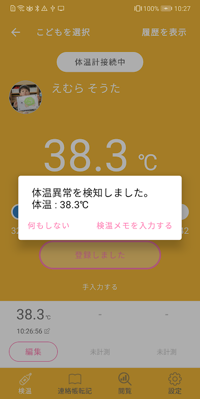 hugnoteと連携しているので、検温データを連絡帳に反映することもできます。